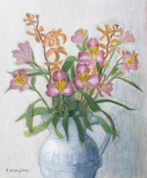 絵のモチーフは、水辺の風景、フルーツ、魚などです.